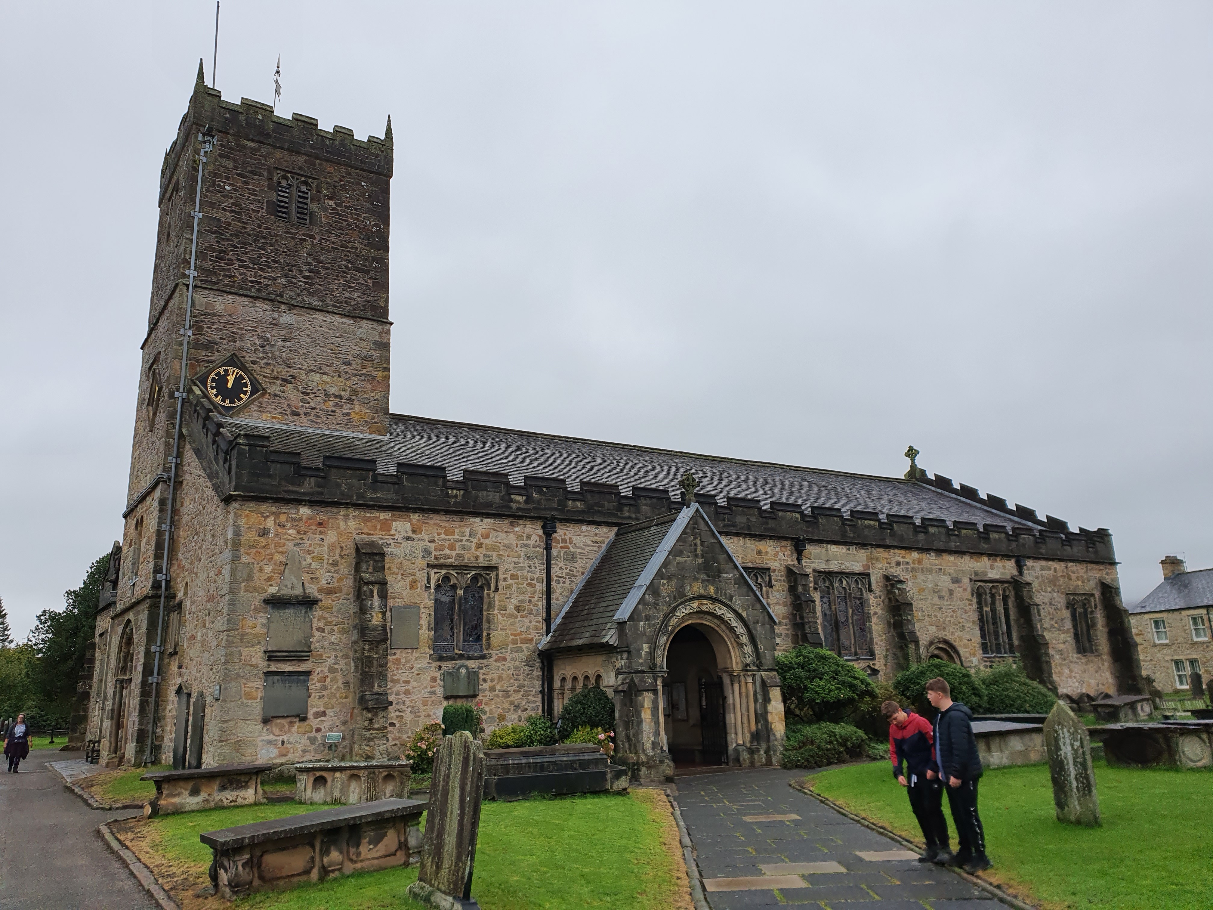 As we wandered around we noticed a large set of wrought-iron gates, as we went across to investigate,  we saw beyond the gates the stunning parish Church of St Mary’s dating back to the 12th century! On entering the church through the large solid wooden doors, it unveiled a beautiful architectural masterpiece of a Church, ornate columns, an amazing raised wooden roof along with a huge incredible stain glass window, the whole building just oozed history  there was a really nice lady inside, I guess she was the church warden or the verger she was really informative and happy to answer any questions I had, I think the boys enjoyed the church, although they were shocked as they wandered around the graveyard reading the inscriptions, and just how many children were resting in the graves, I tried to explain that from 1800 to about 1870, the major causes of death in children were tuberculosis, diarrhea of infancy, bacillary dysentery, typhoid fever, and the highly contagious diseases of childhood, especially scarlet fever, diphtheria, and lobar pneumonia (oh the power of Google).
