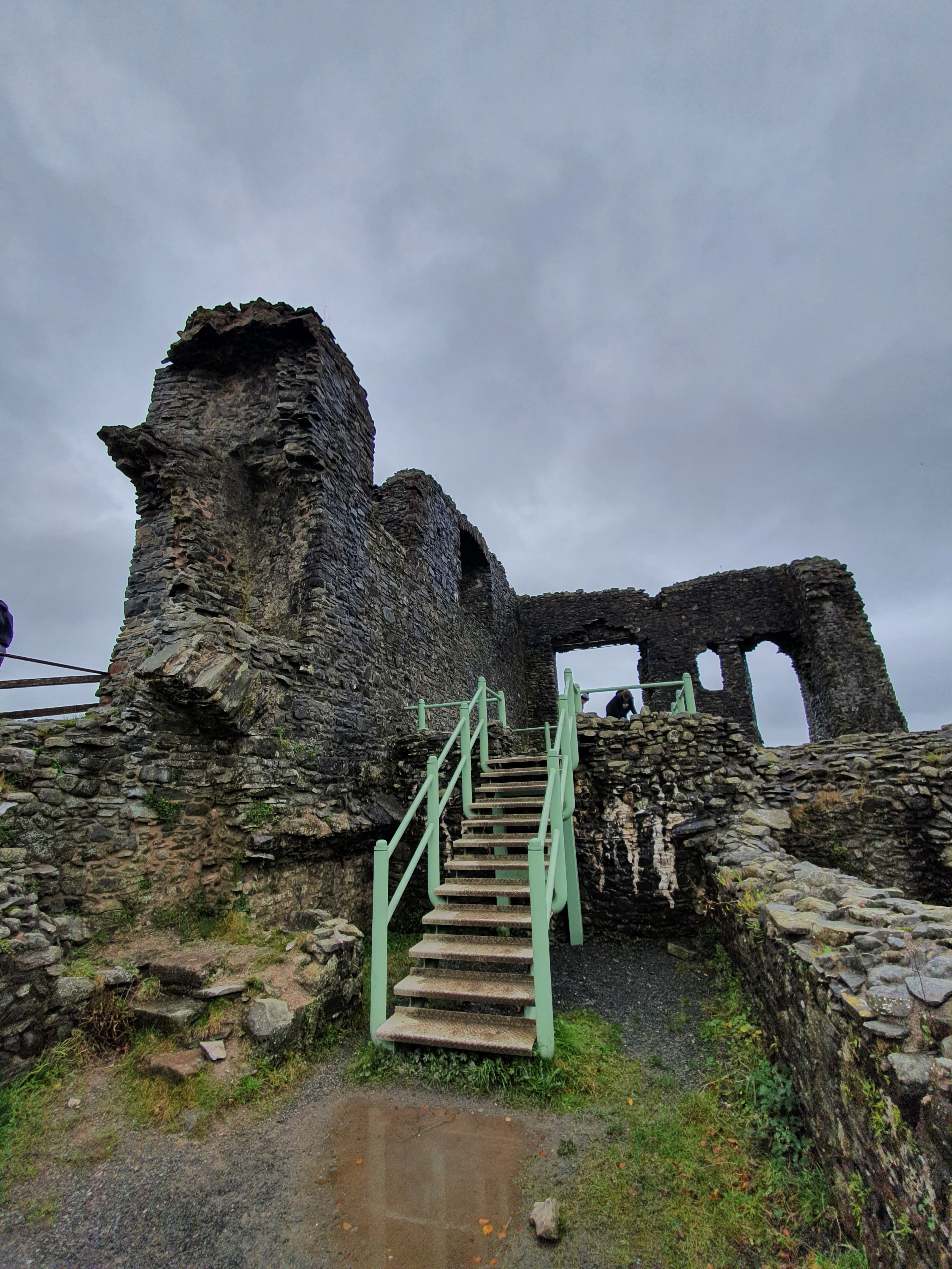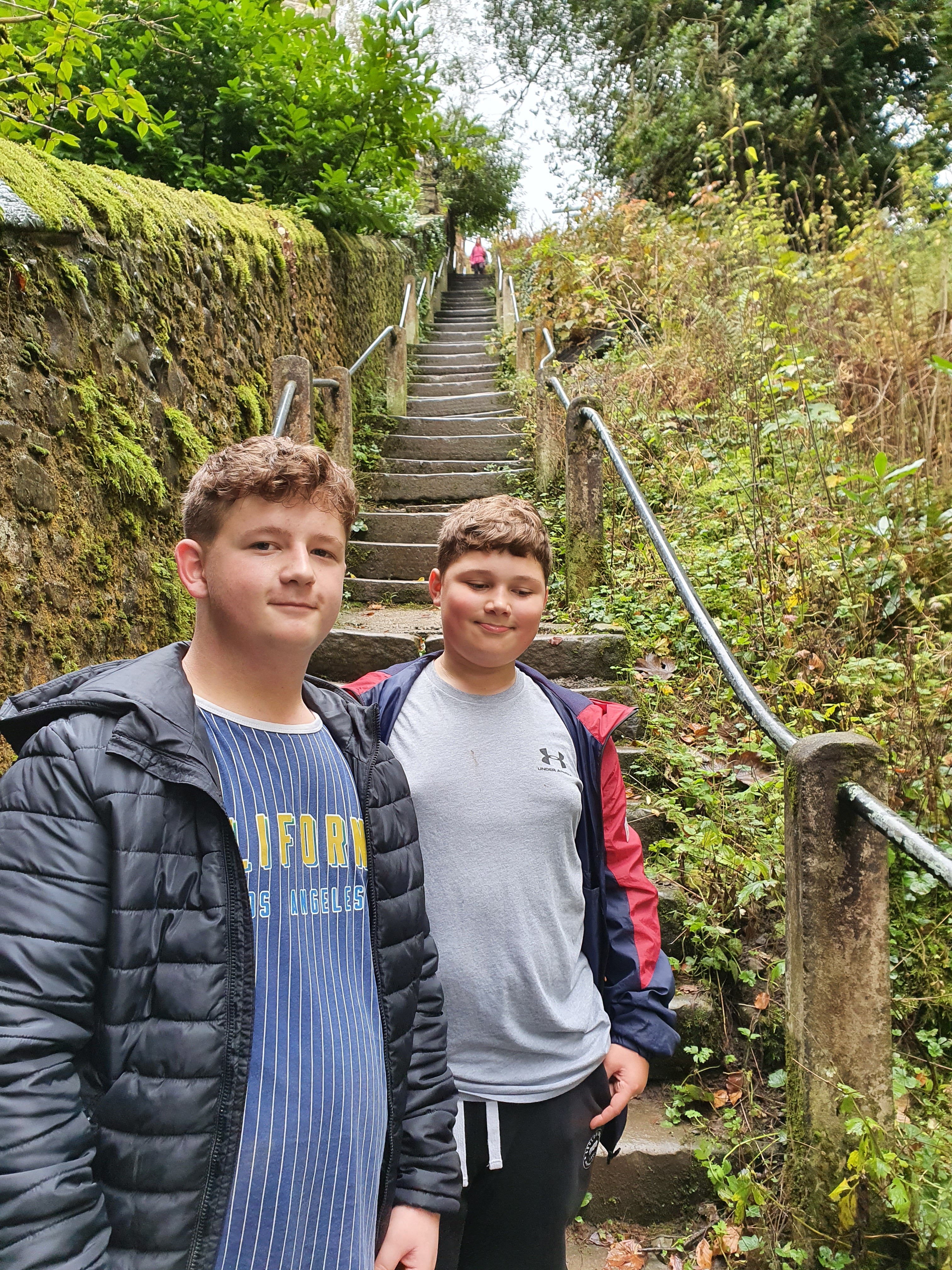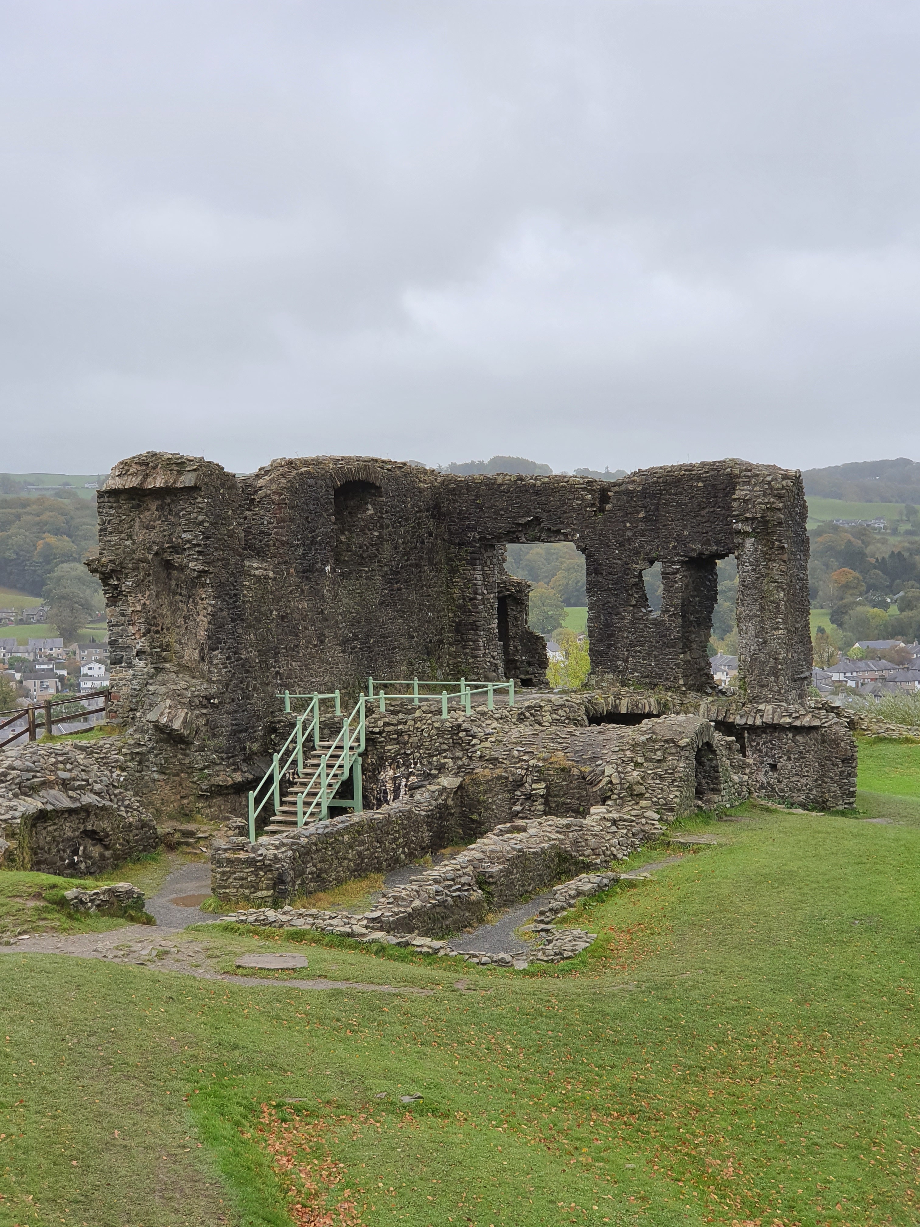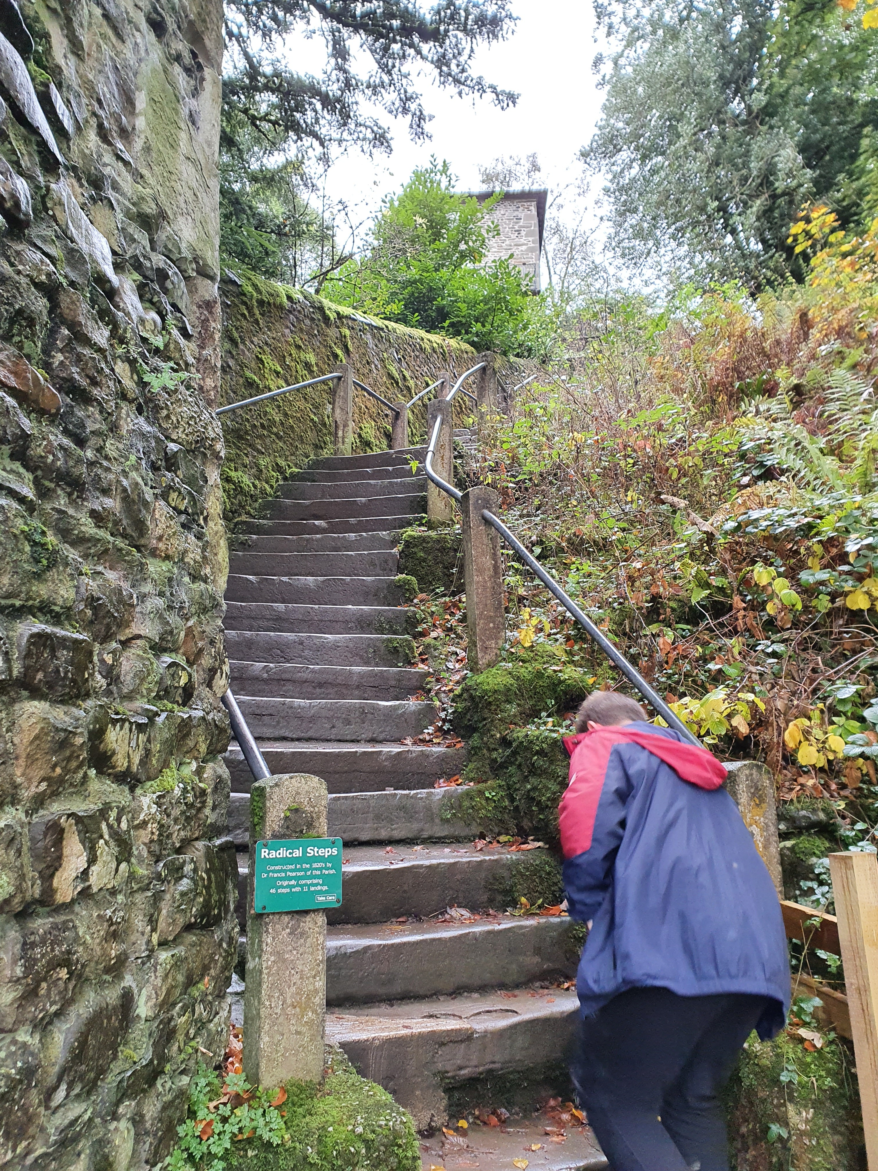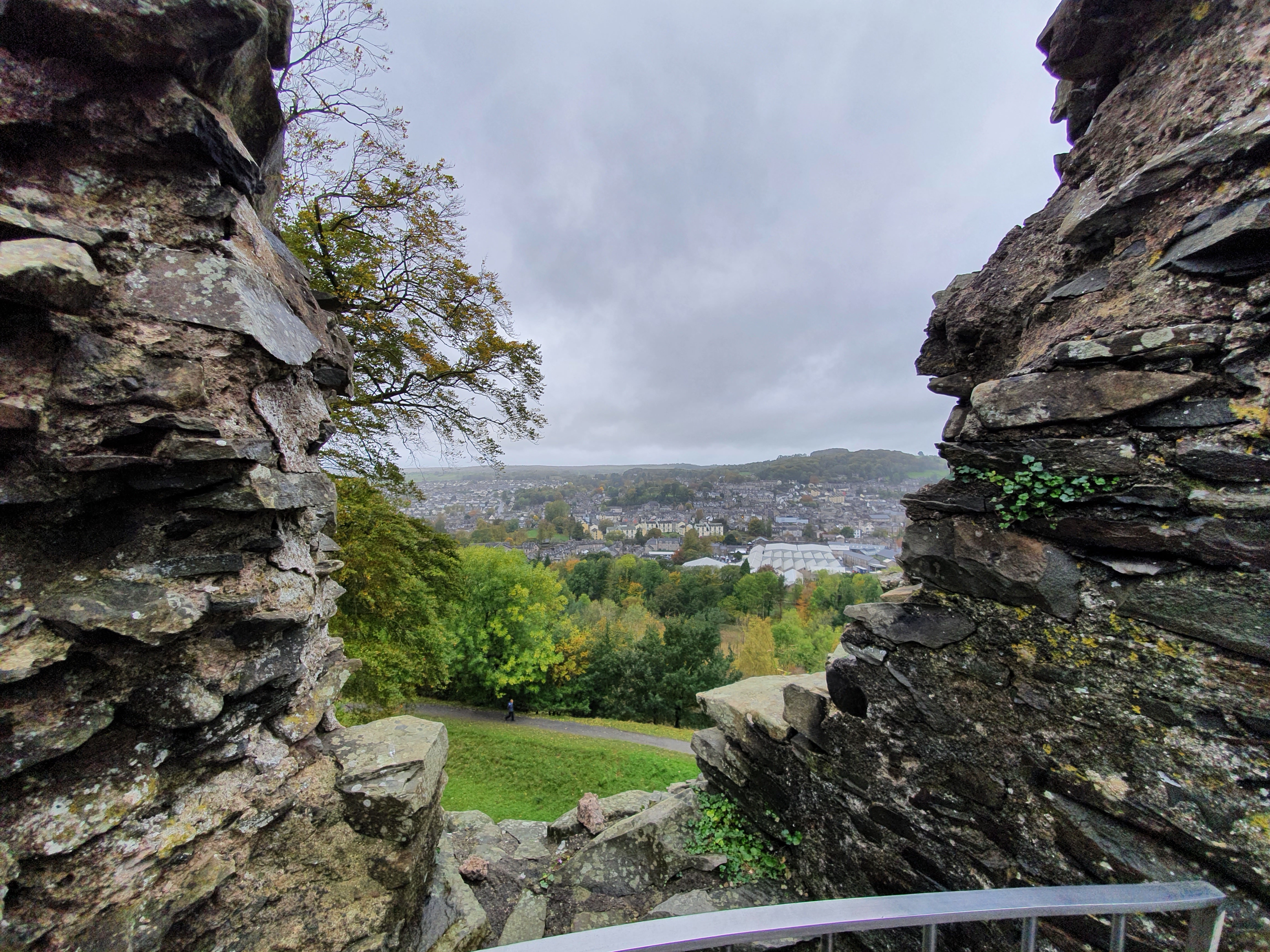 After arriving in Kendal after a relatively short drive, I had to negotiate the endless one-way streets that seem to take you in the oddest of pointless circles? But after driving around like the Griswald family we found the turn off to get to the castle. A small pay and display carpark greeted us which wasn’t working? Tried paying online again not working? So in the end thought sod it and simply parked the car. A steep set of steps greeted us through a wood, quite slippy but given the current weather, as we proceeded through the wood me and Michelle took the sensible pathway whereas the boys opted for the Bear Grylls route up a steep muddy hill through trees and fauna (boys will be boys) the climb is quite a trek up but we’ll worth the climb and effort.
