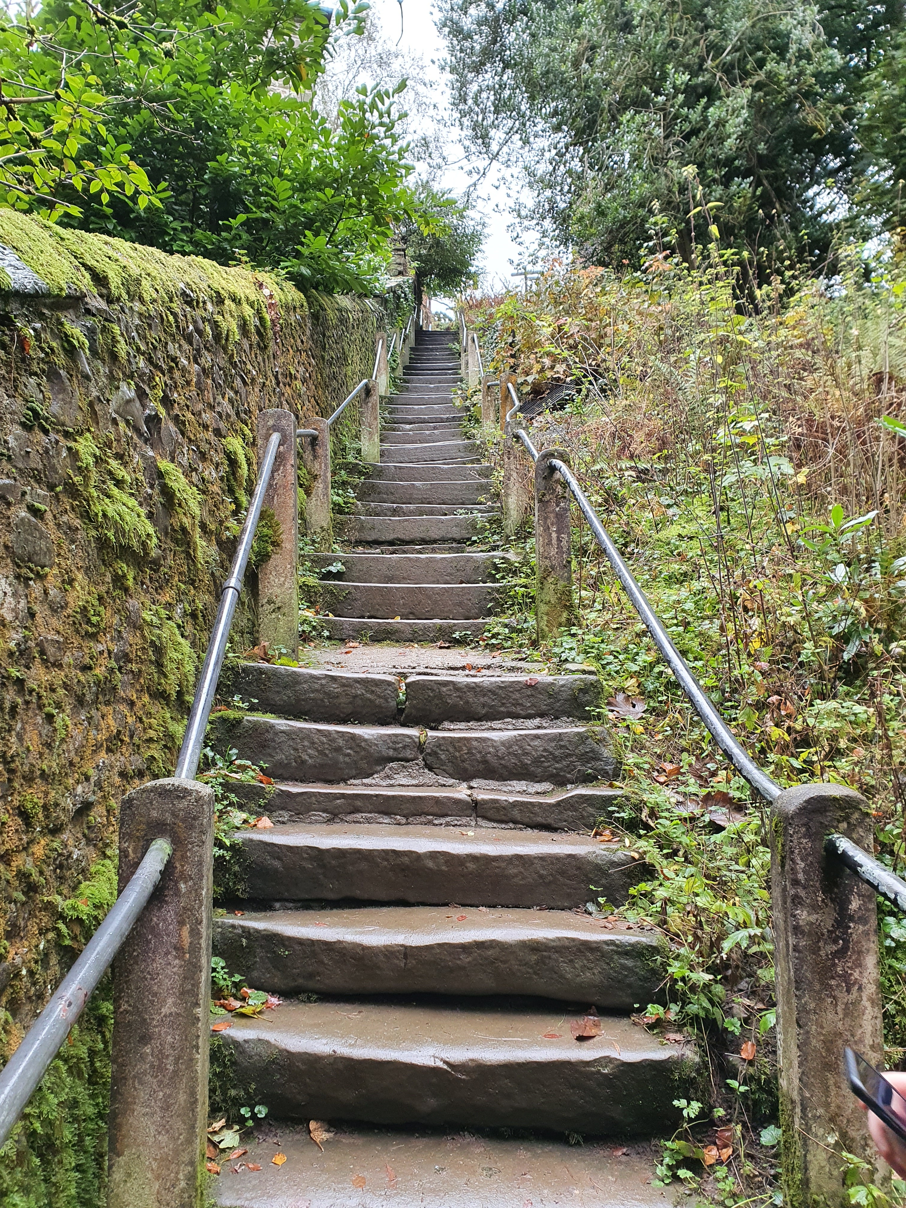The woman met him at the bridge, took a bun from her bag and threw it across the bridge. Her small dog went to retrieve it. The devil howled in anger at being tricked before vanishing forever. Makes a great tale but the bridge itself is amazing, in how it was built etc. Underneath amongst the ribs of the bridges arches, the stone masons that built the bridge have all chiselled in their own mark bit like a signature, really was a great place and we’ll worth a visit, after taking in this fine Medieval bridge we strolled alongside the river Lune upstream passing huge colossal ancient Oak Tree’ towering majestically above us, wondering what history they’ve witnessed? We carried on, on an easy level path which follows the river until it comes to ‘The Radical Steps’, 86 stone steps rising from the riverside all the way back up to St. Mary’s churchyard, built in 1819 by local man Francis Pearson, reputedly a bit of a political firebrand, hence the name of the steps…