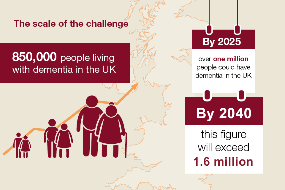 The risk of Alzheimer’s disease and other types of dementia increases with age, affecting an estimated 1 in 14 people over the age of 65 and 1 in every 6 people over the age of 80. But around 1 in every 20 people with Alzheimer’s disease are under the age of 65. This is called early- or young-onset Alzheimer’s disease.