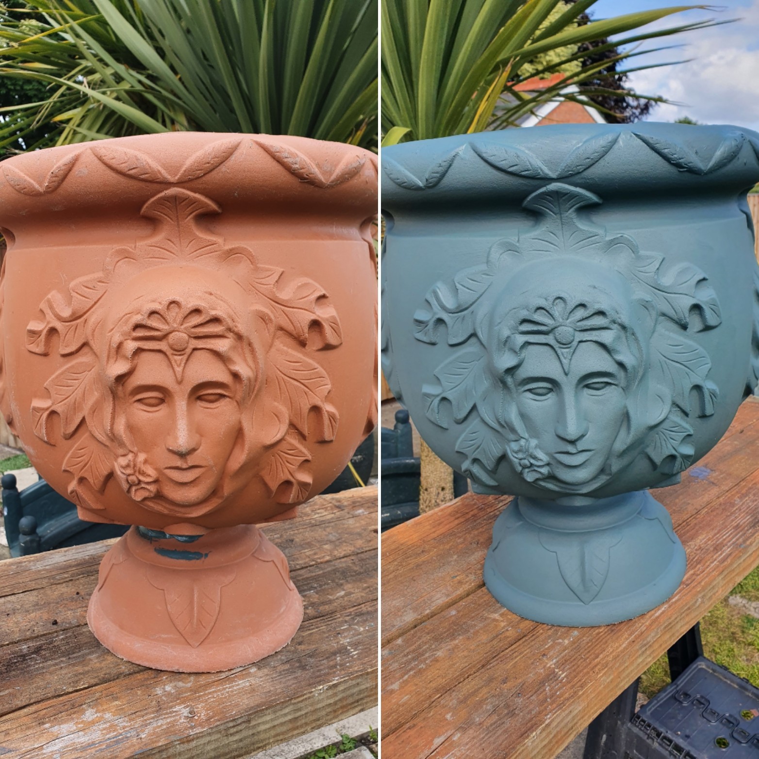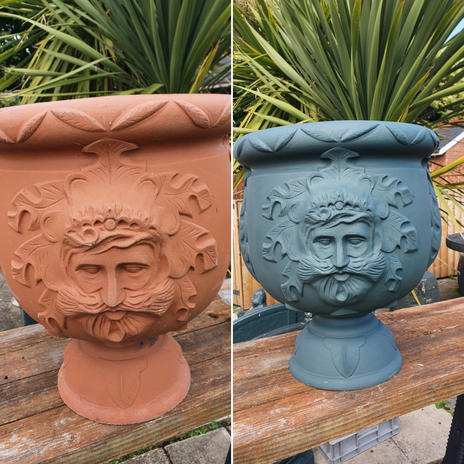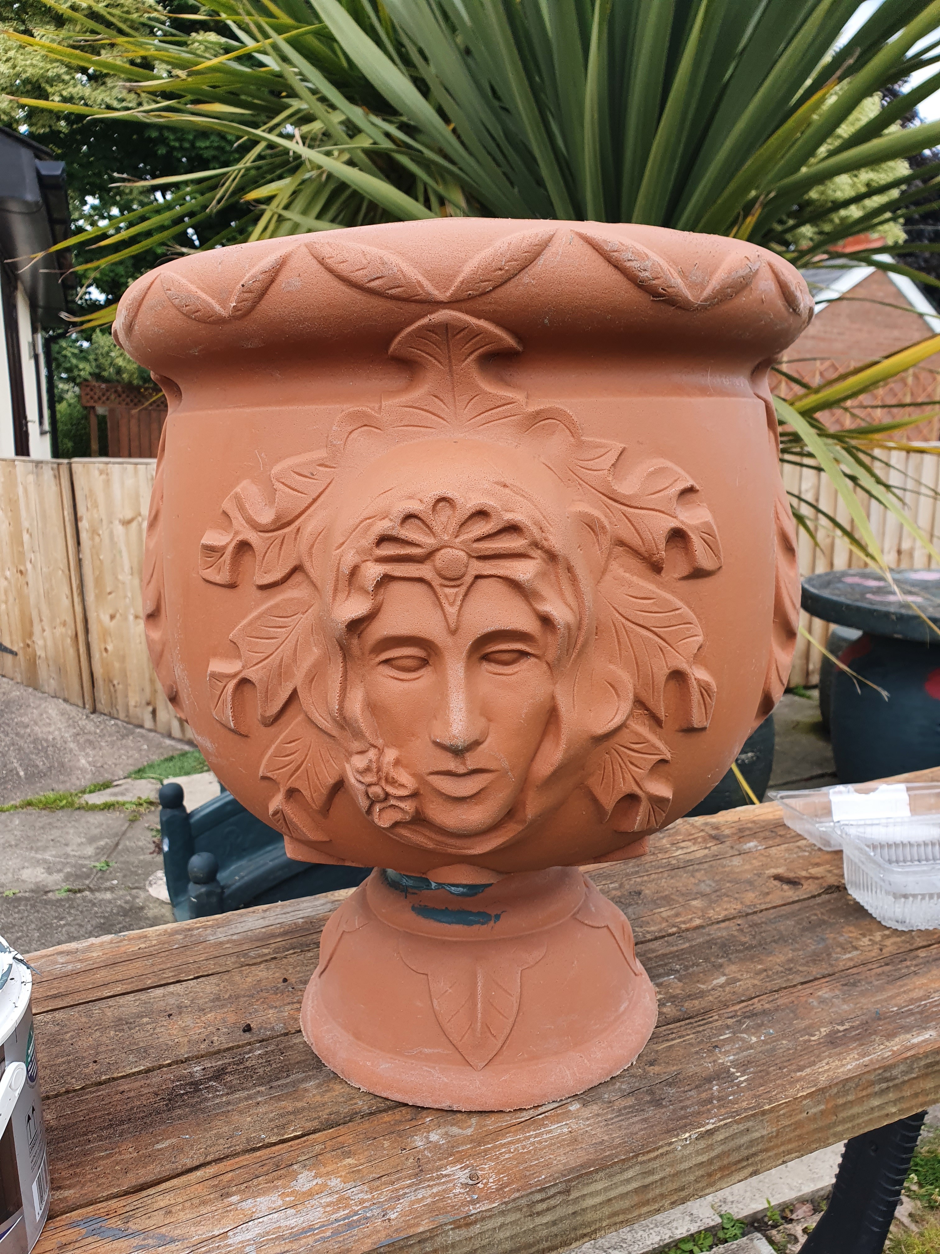 I also found buried under some garden sacks several extremely weathered and rather tired Terracotta coloured plastic plant pots, they at one point ended up on the pile bound for the tip! But I thought I’d give them a clean up see if they look any better restored, have to say I was so pleased I chose to save them! 5 pots in total restored and looking great to be enjoyed for a great many more years! These pots are at least 20+ years old.