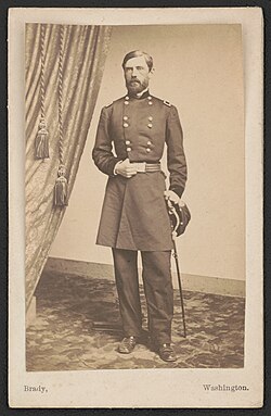 At the request of Pennsylvania Governor Andrew G. Curtin, Reynolds was given command of the Pennsylvania Militia during General Robert E. Lee’s invasion of Maryland. Generals McClellan and Joseph Hooker complained that “a scared governor ought not to be permitted to destroy the usefulness of an entire division,” but the governor prevailed and Reynolds spent two weeks in Pennsylvania drilling old men and boys, missing the Battle of Antietam However, he returned to the Army of Potomac in late 1862 and assumed command of the I Corps. One of his divisions, commanded by Maj. Gen. George G. Meade made the only breakthrough at the Battle of Fredricksburg but Reynolds did not reinforce Meade with his other two divisions and the attack failed; Reynolds did not receive a clear understanding from Maj. Gen. William B. Franklin about his role in the attack. Before the battle, Reynolds was promoted to major general of volunteers, with a date of rank of November 29, 1862.[11]
